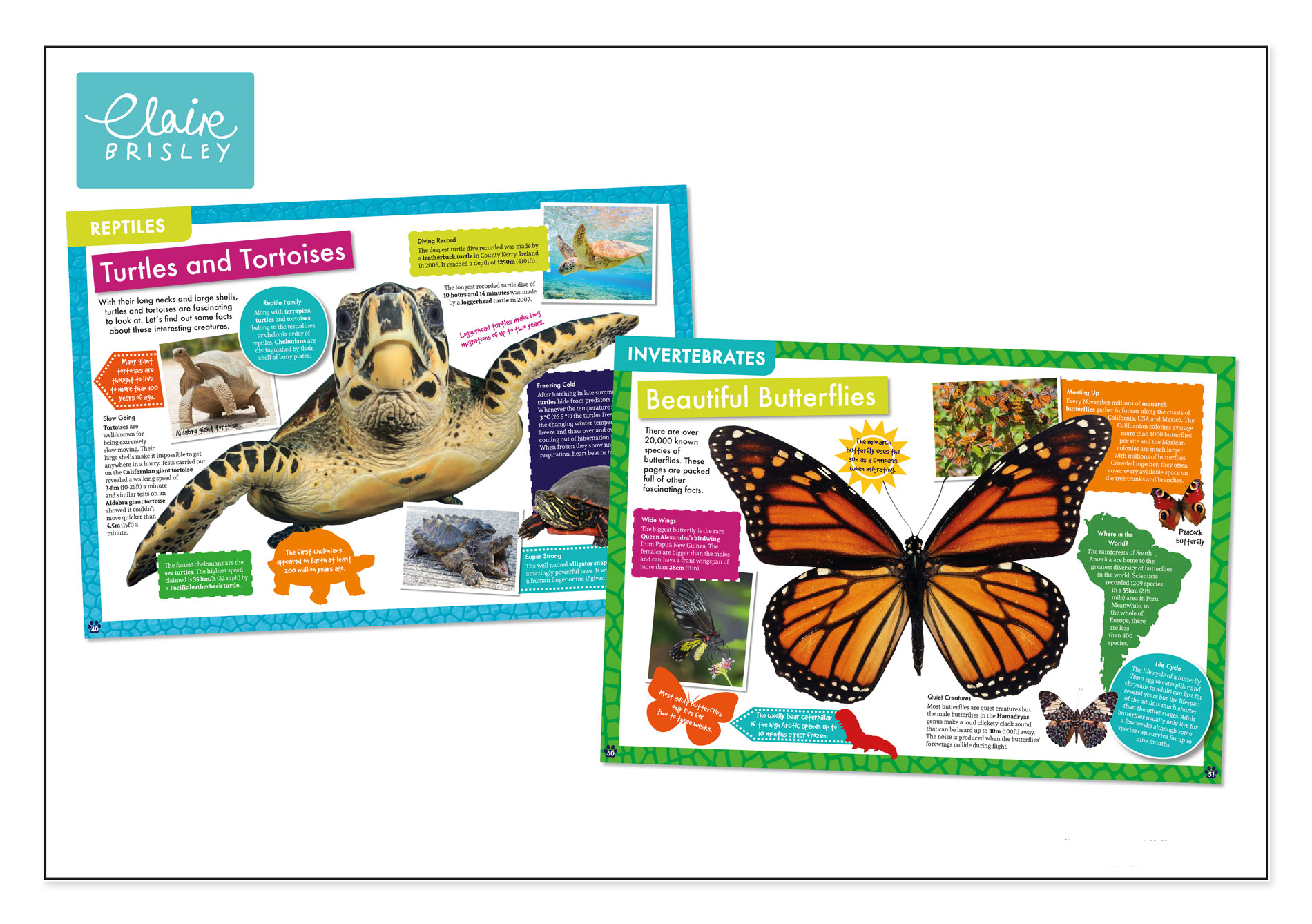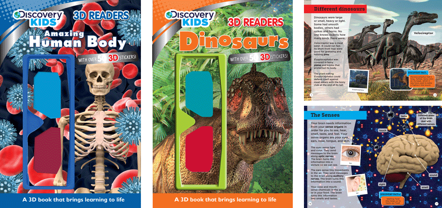 Reference Spreads from Natural History Museum Annual for Little Brother Books - Amendments to cover - Full design of 86 page internals - Photo research - Development of style and graphic elements -Supply of files to production Discovery Kids series - Cover design - Layouts and briefing of freelancers - Design of internals - Artworking 3D scenes - Set up of dielines/3D glasses/foil/trays -Supply of files to production